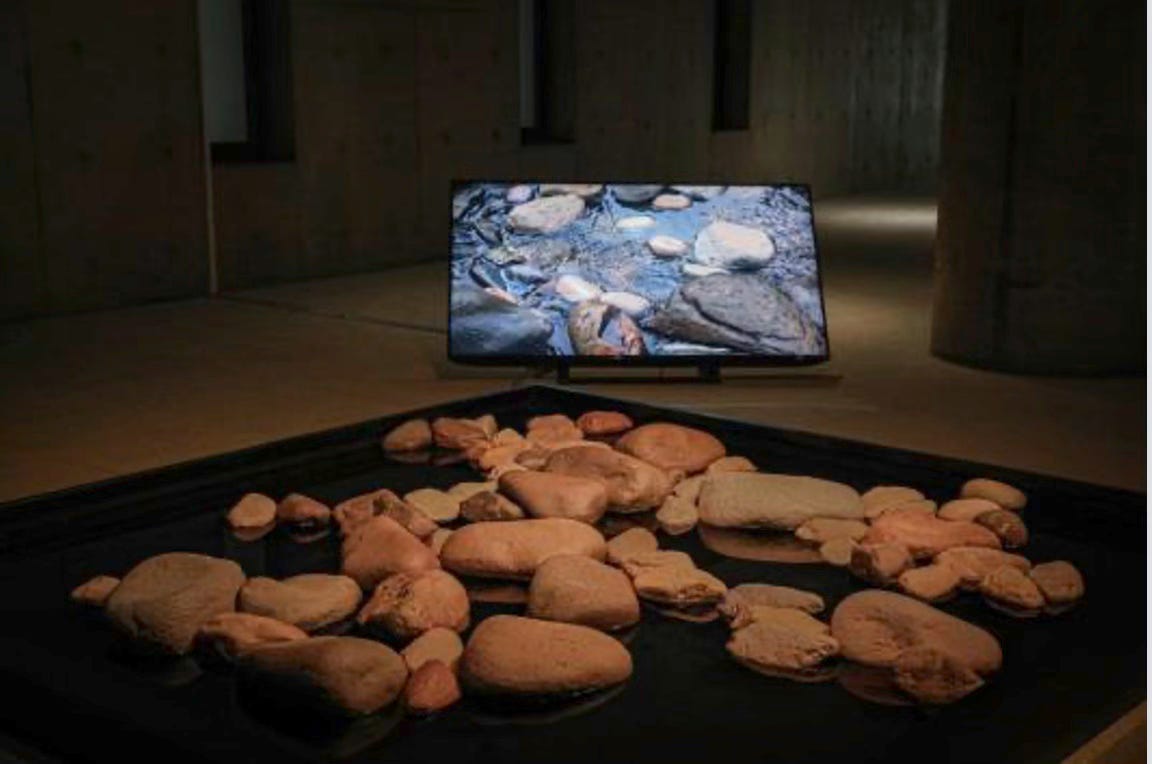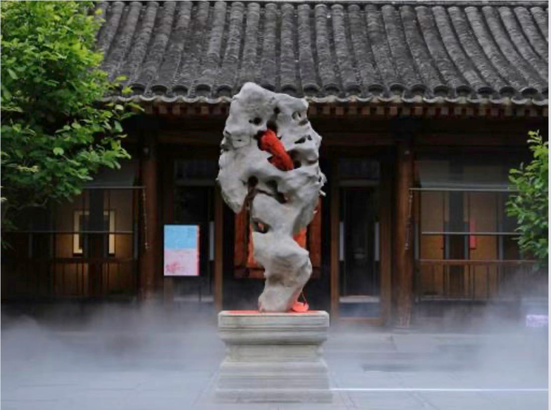 We gave a Highly Commended to another staggeringly well-conceived work, To install a heart in Taihu rock, by Xiaoxue Zhang; and Commendeds to a mind-boggling painting of a hay bale by Deirdre Bean, and a video landscape created with nano technology by Suxuan Jiang, that resembles a brush-and-ink painting in motion. This piece is also being shown at the 2026 Venice Biennale.