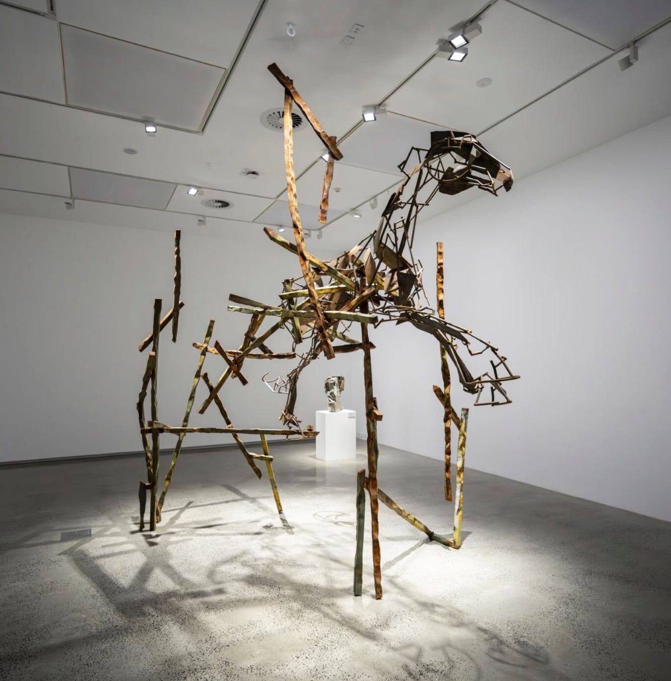This piece, which should have been purchased for the Australian War Memorial, now resides in Adelong, as part of the Snowy Valleys Sculpture Trail. If you go looking for it, don’t expect something in a classical vein. Fasher’s horses are made from shards of metal welded together to create a stark and deathly impression. They conjure up thoughts of the Four Horsemen of the Apocalypse from The Book of Revelation, only there are no riders involved.